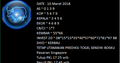 Prediksi SINGAPORE HARI INI 10 MARET 2018 BANDAR TOGEL ONLINE TOGEL